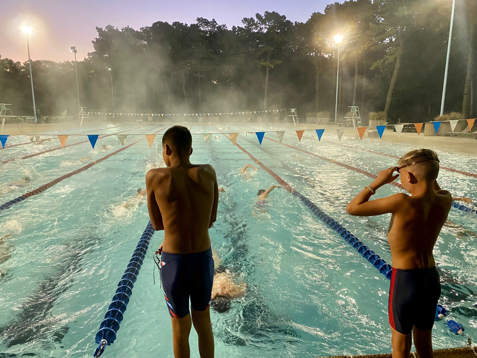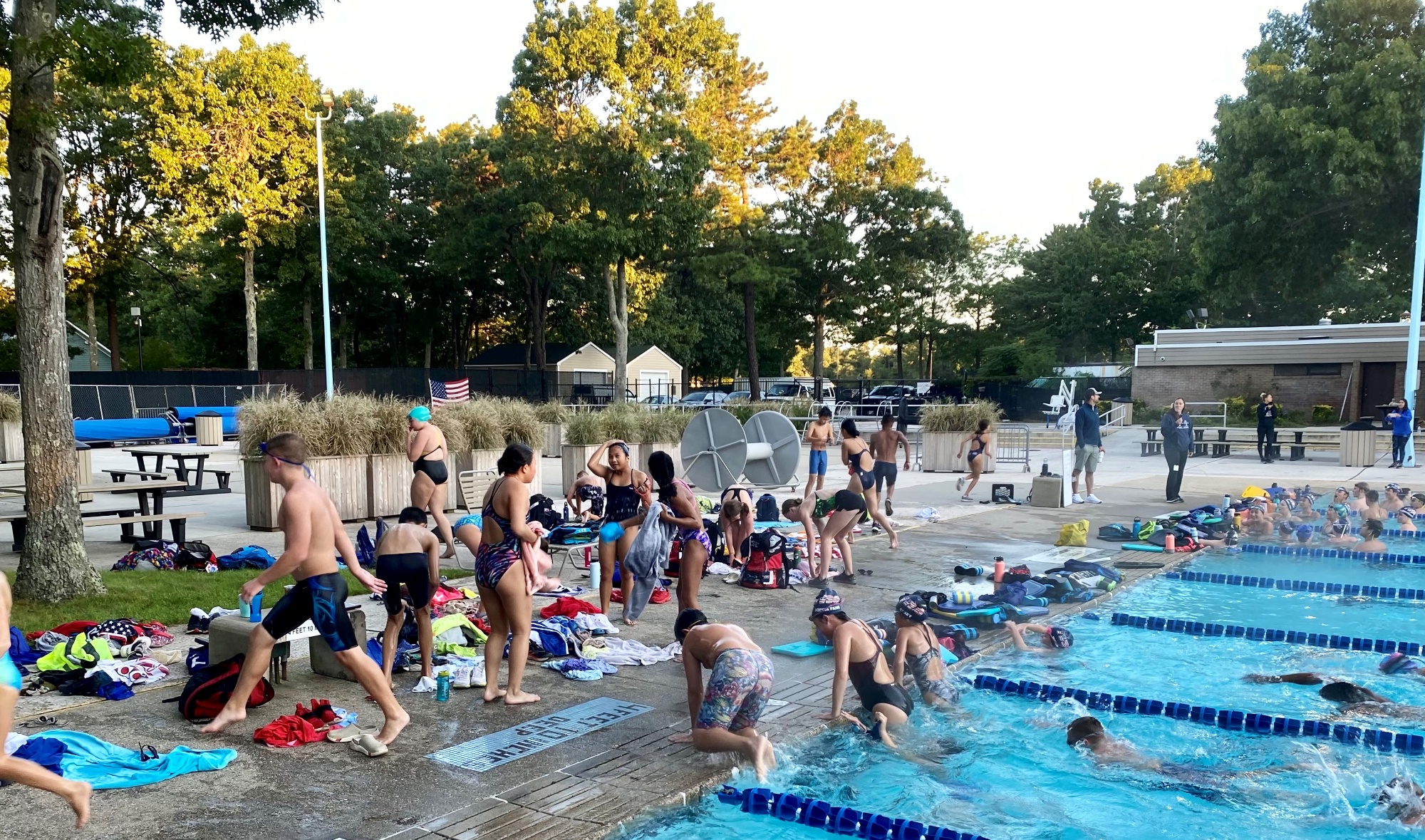 While in 2020 we trained outdoors in the Holtsville pool until Thanksgivings, today, September 11, was the last Holtsville practice of 2021. Ryan and Landon taking their time jumping in the pool for the warm-up.
