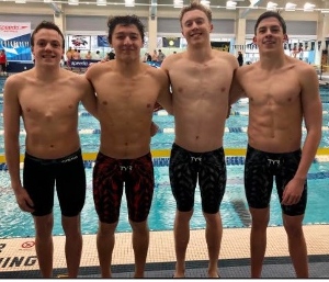 TVSC Men finished in 5th place out of 48 teams that scored points with 224 total points. Liam Preston led the TVSC men with 90 individual points, along with Noah Giunta’s 18 points. Liam (1:37.74) and Noah (1:44.54) teamed up with Vinny Vinciguerra (1:44.04) and Timmy Brady (1:46.76) to break the TVSC record in the 800 Free Relay previously established in 2019 by almost 3 seconds, clocking a 6:53.08. Trevor Green added relay points and qualified for finals in the 200 Backstroke, while Frankie Andersen added relay points and qualified for finals in the 200 Fly.