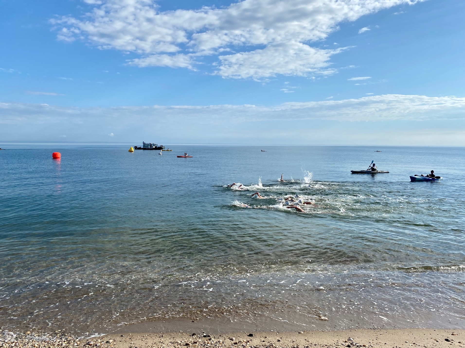 Surpringly, this morning it was sunny and pleasant, or perfect open water swimming conditions for the first USA-Swimming sanctioned open water event at Cedar Beach.
