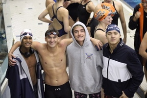 While we were denied the opportunity to celebrate in the pool, most of the coaching staff was content staying dry and relieved we would not be able to break another Nassau County Aquatic Center lane line (County Champions, April 2022).