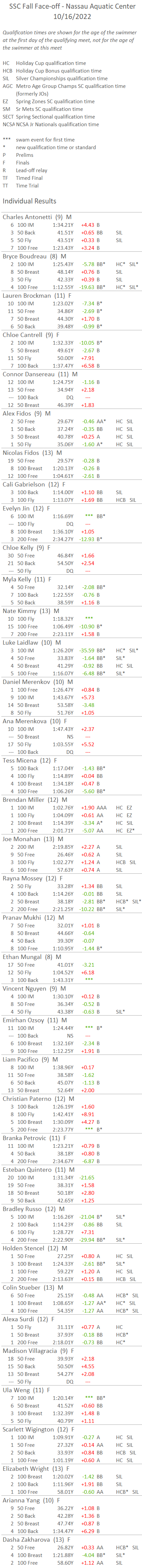 New qualification times: 1 Eastern Zone Age Group Champs cut, 3 JO cuts, 5 Holiday Classic cuts, 6 Holiday Classic Bonus cuts, and 12 Silver cuts.