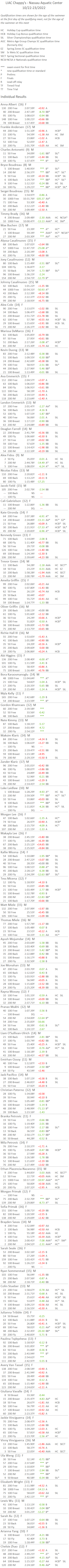 New qualification times: 2 NCSA cuts, 2 Sectional cuts, 2 Senior Mets cuts, 1 Eastern Zone Age Group Champs cut, 18 Holiday Classic cuts, 23 Holiday Classic Bonus cuts, and 20 Silver cuts.