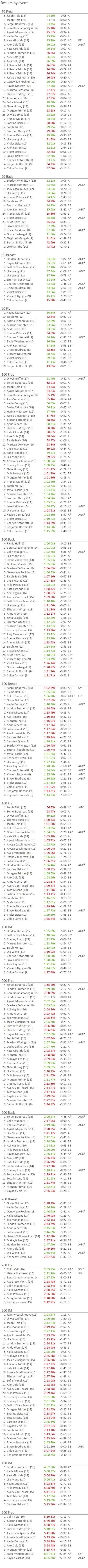 New time standards: 1 'AAA' times, 8 'AA' times, 35 'A' times, and 10 'BB' times.