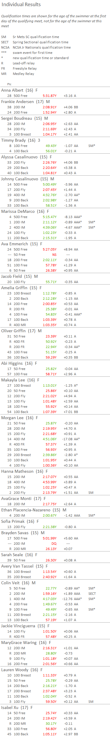- Women’s 200 Freestyle Relay, 5th Place – Amelia Griffin, Makayla Lee, Lauren Woody, Isabel Xu