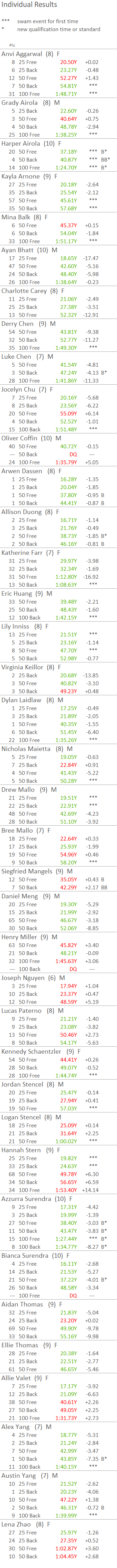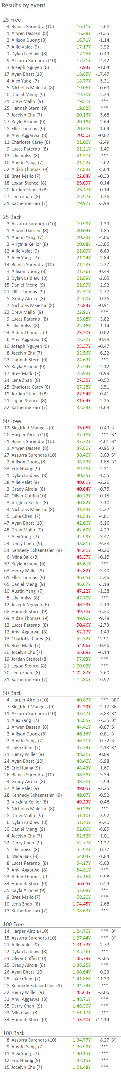 38 TVSC Novice swimmers raced 147 times and swam 111 best times -- 76%. Total time improvement 334 seconds, or more than 5 minutes.