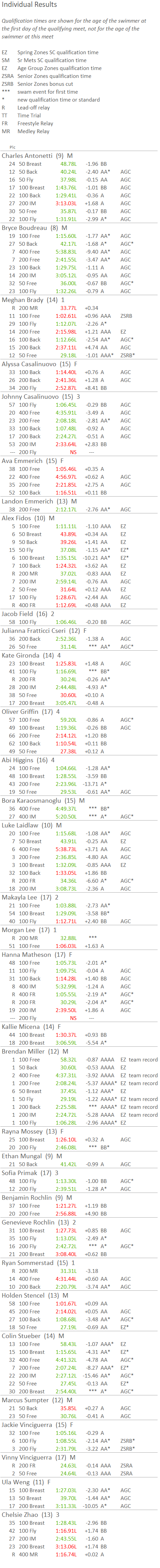 New qualification times: 7 Eastern Zone Age Group Champs cuts, 12 new LC JO cuts,