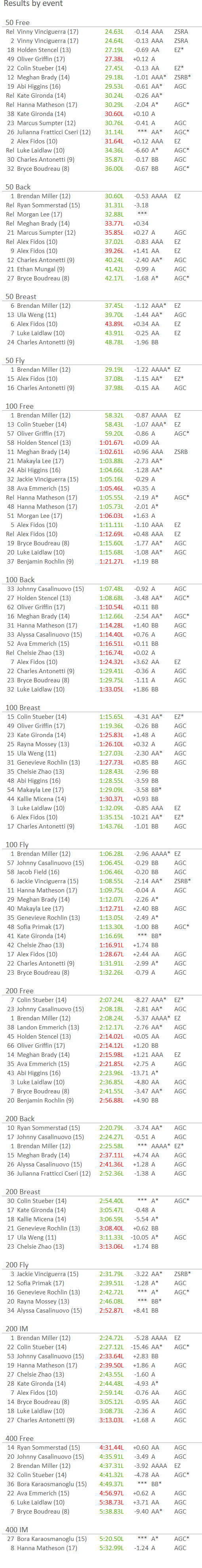 Brendan Miller: 100, 200, 400 free, 200 back, 50 fly, and 200 IM.