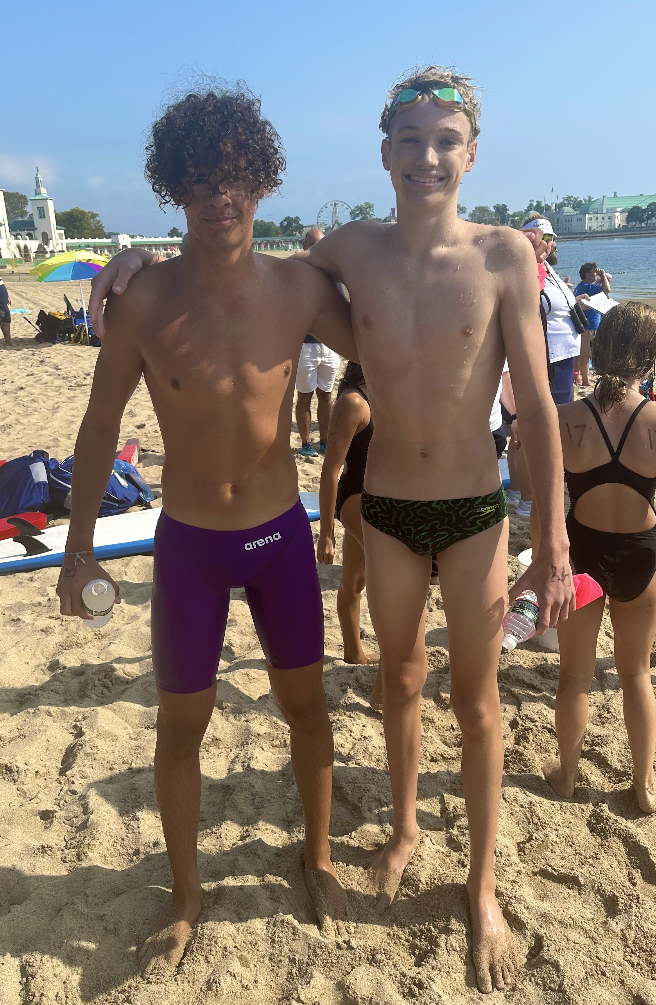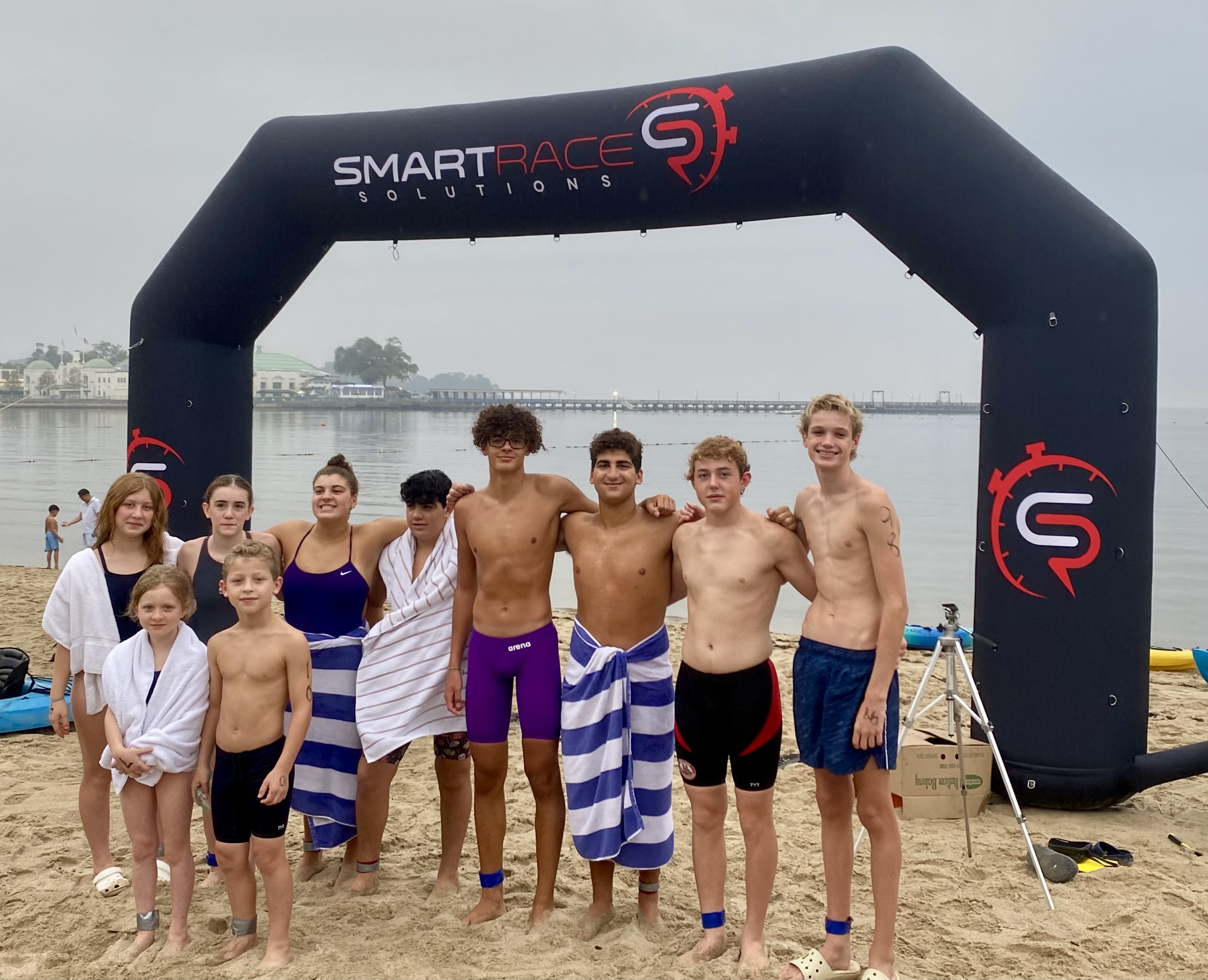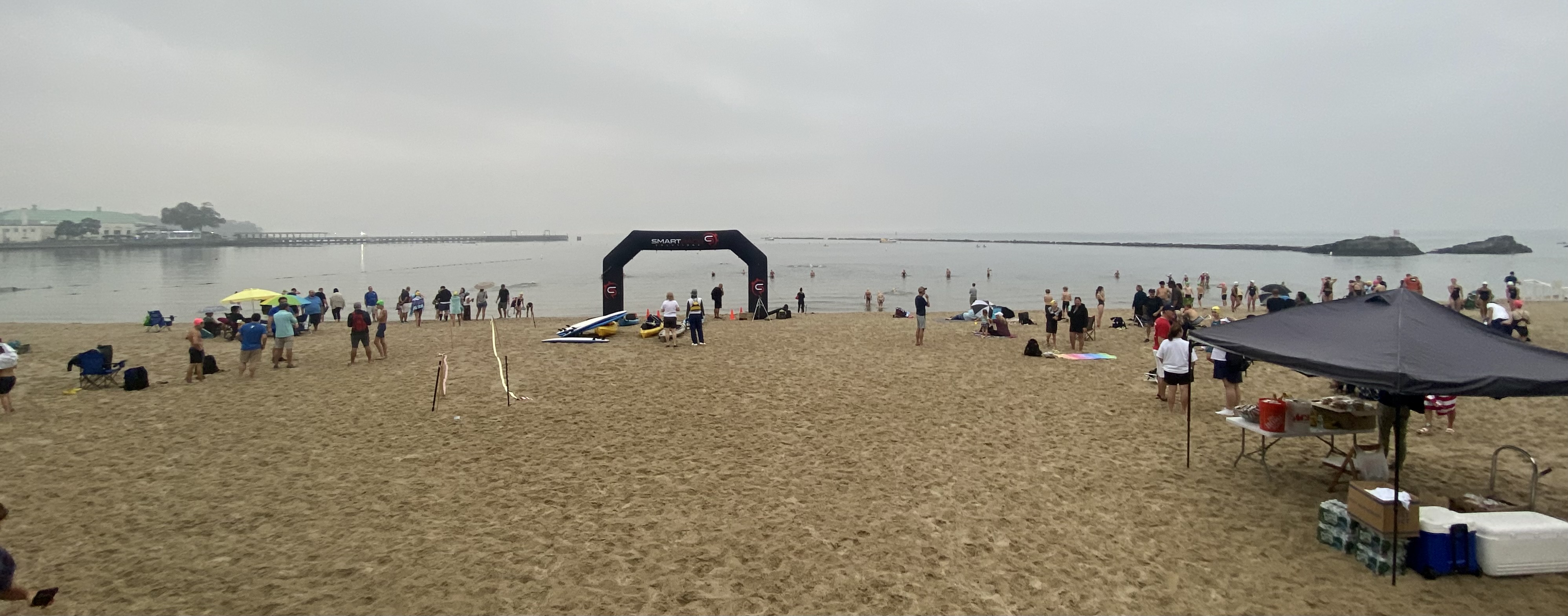 September 10, 2023 - Oops! Yesterday's Metro LSC Open Water Championsships were held two weelks earlier than in previous years. And this caused a big unforseen issue. With the Rye Playland Amusement Park still open, the racing venue was closed off with a rope to keep small motor boats out, which cut the planned 1K race course in half. A new 500 meter race course needed to be setup using kayaks instead of a power boat. The start of the event was delayed by 1 hour and 20 minutes, and with the tide going out this caused the second issue with a section of the course barely deep enough to swim in. The third issue was that in the middle of the 3K and 5K race the one of the four bouys detached from its anchor, causing length of the course to change from a bit longer than 500 meter to less than 500 meter.