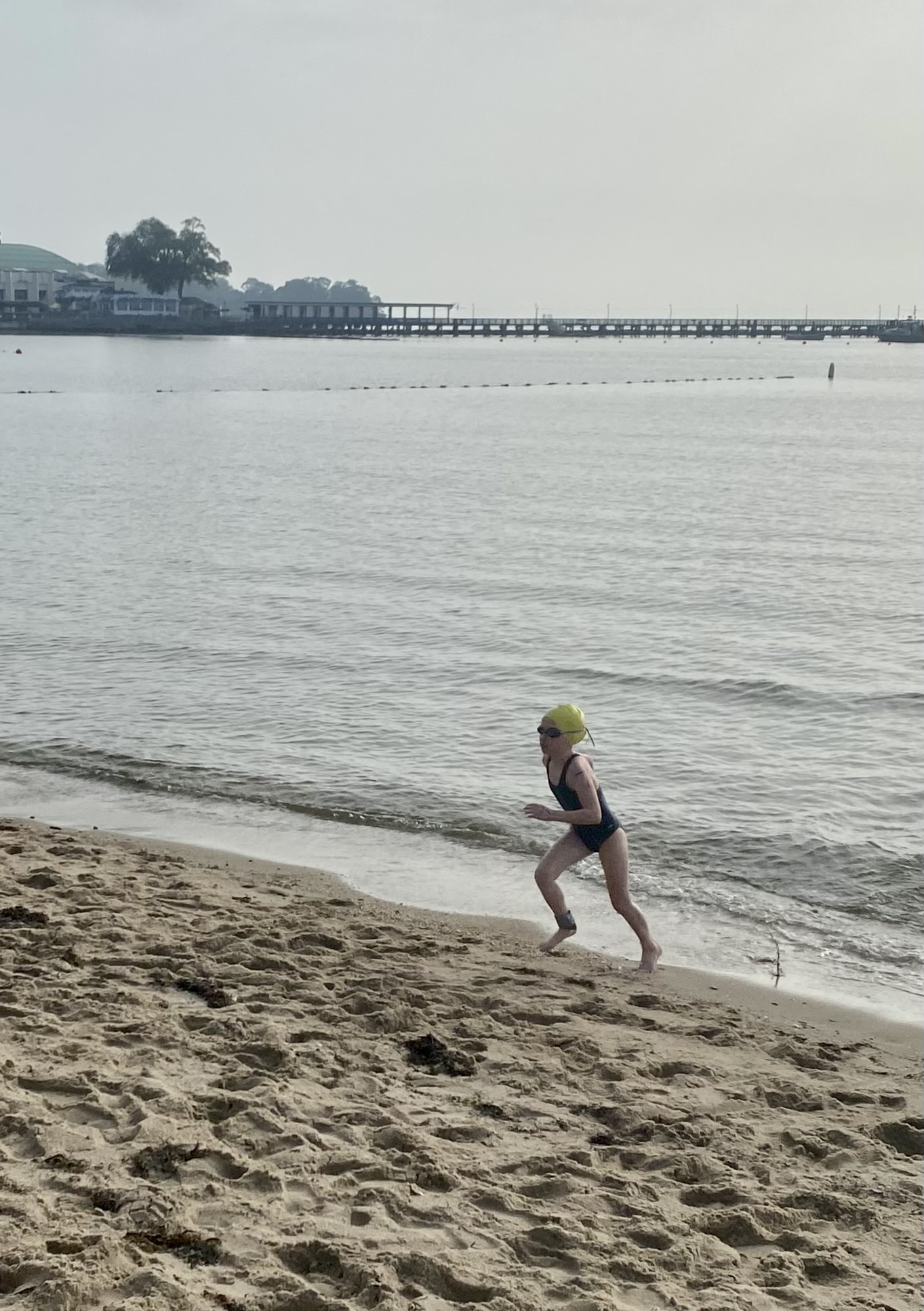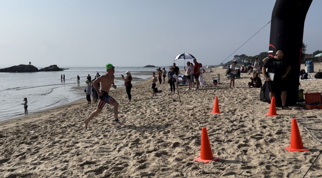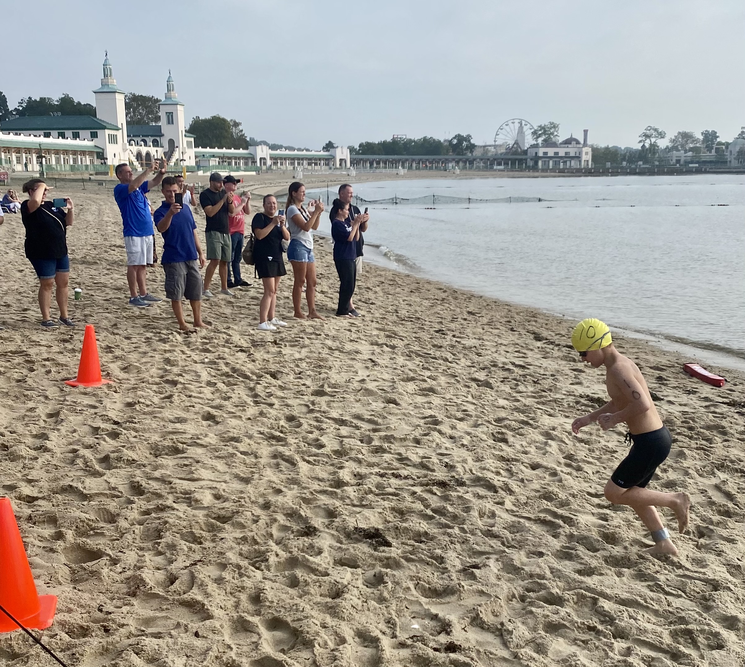 Ryan getting out of the water in first place, winning his 3rd Metro 5K Open Water Championship