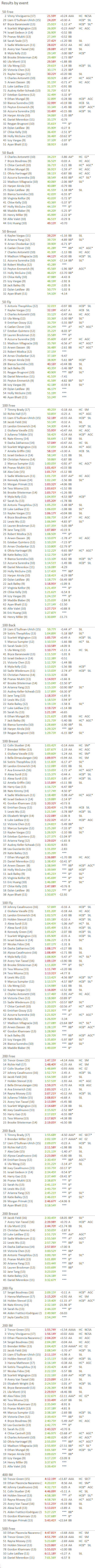 91 athletes raced 350 times and swam 260 best times -- 74%.