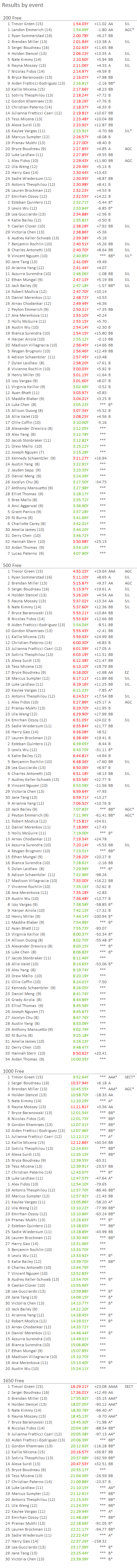 During their 1000 race, Jack Baily, Esteban Quintero, and Lewis Wu swam three best times: 200, 500 and 1000 free.