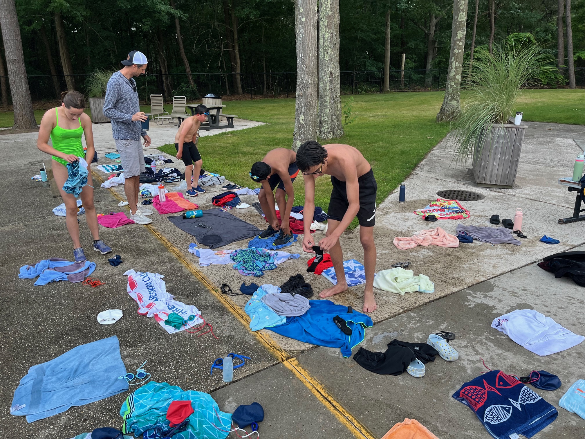 Coaches waiting for the swimmers finish their 1 1/2 mile run