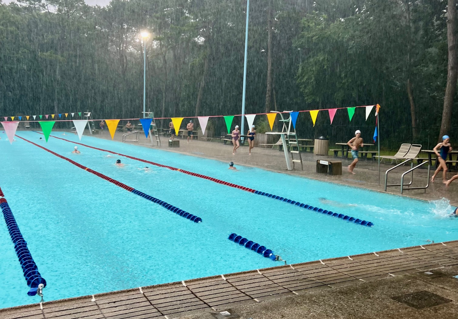 Saturday July 13 - 7:20 AM - Junior team liked doing runners with jog back in heavy rain