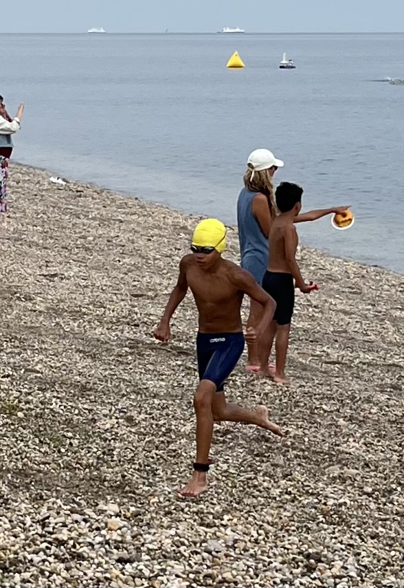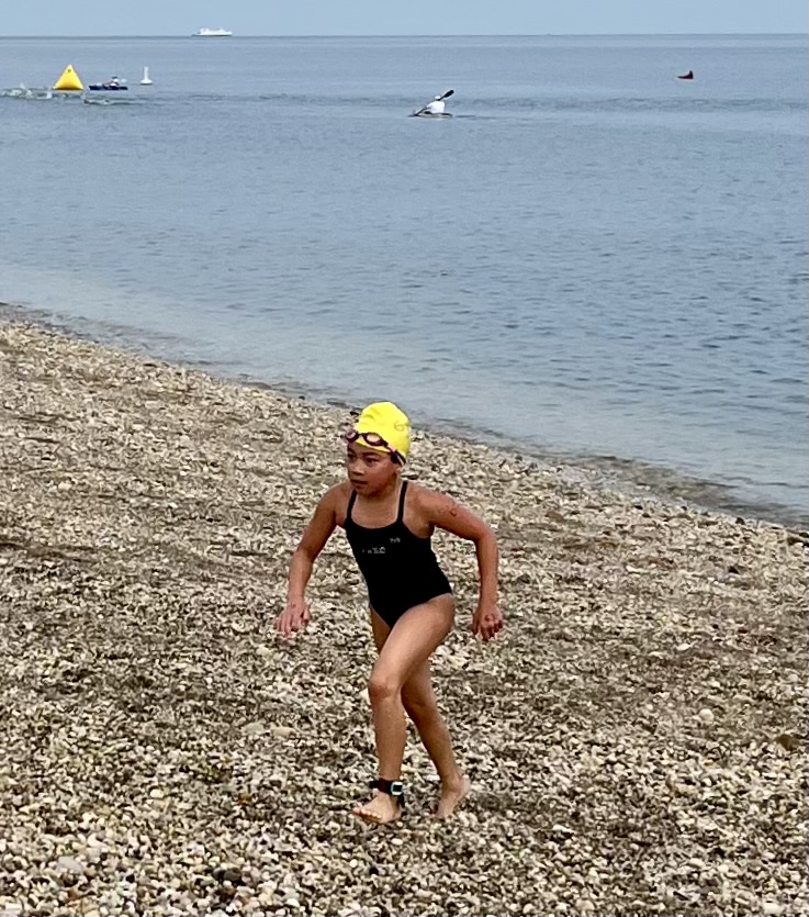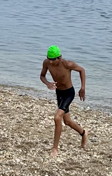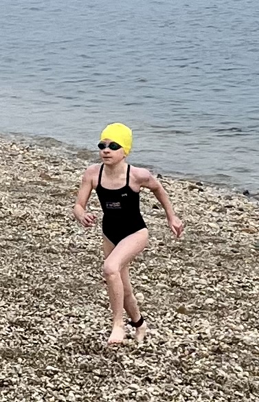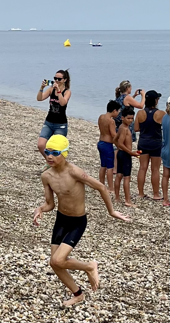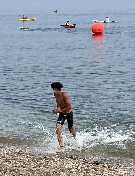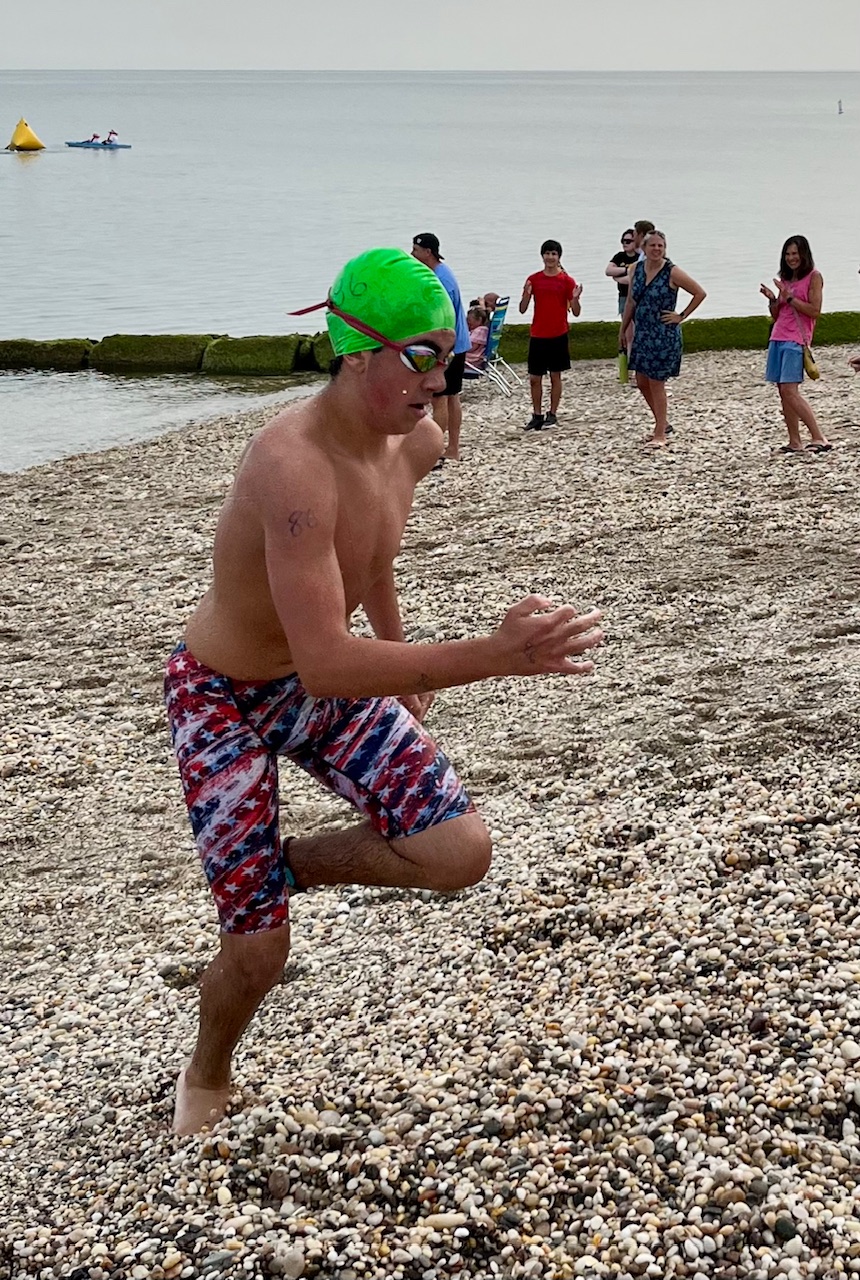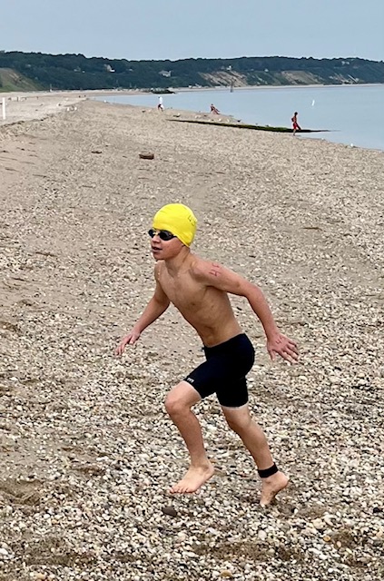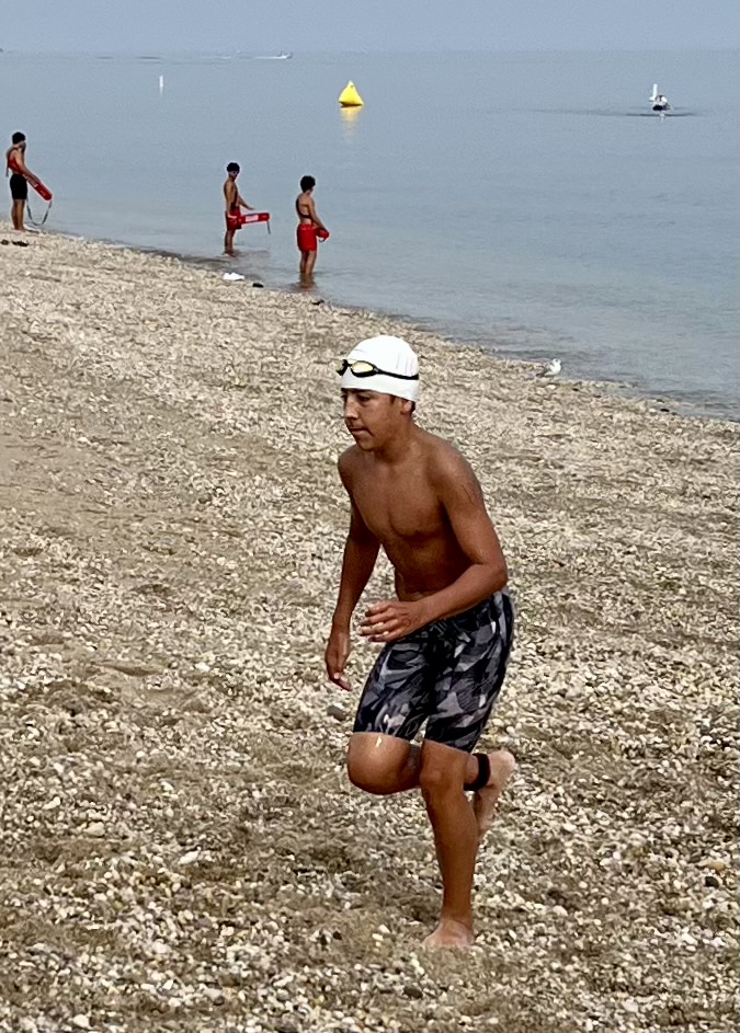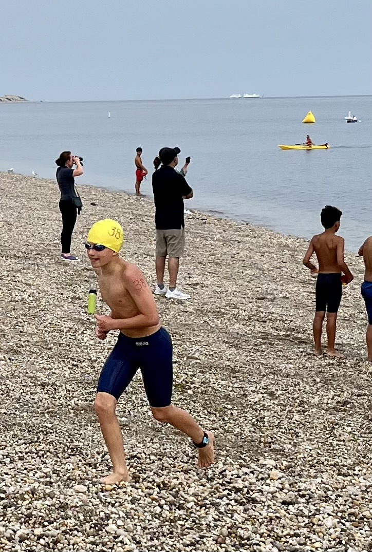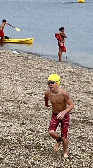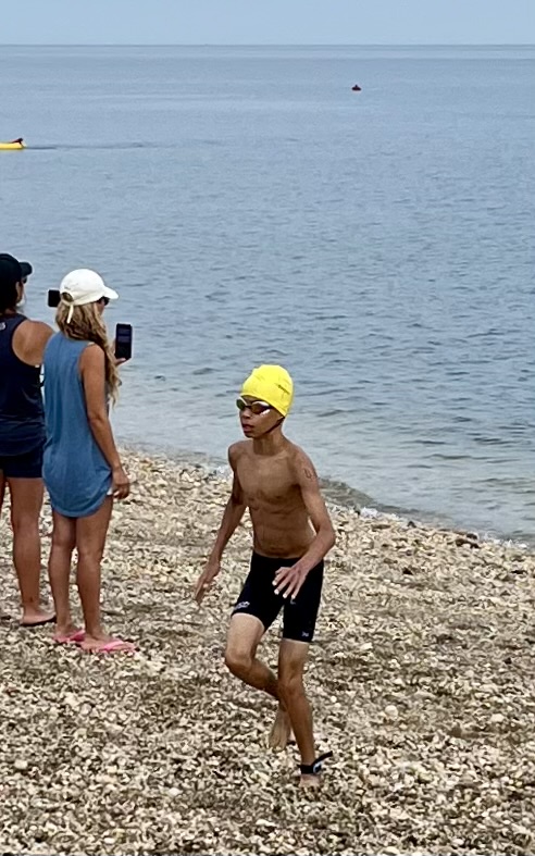 Luke (11) finishing his first 3K came in 4th of all 3K swimmers! and 1st place for 11-12 boys