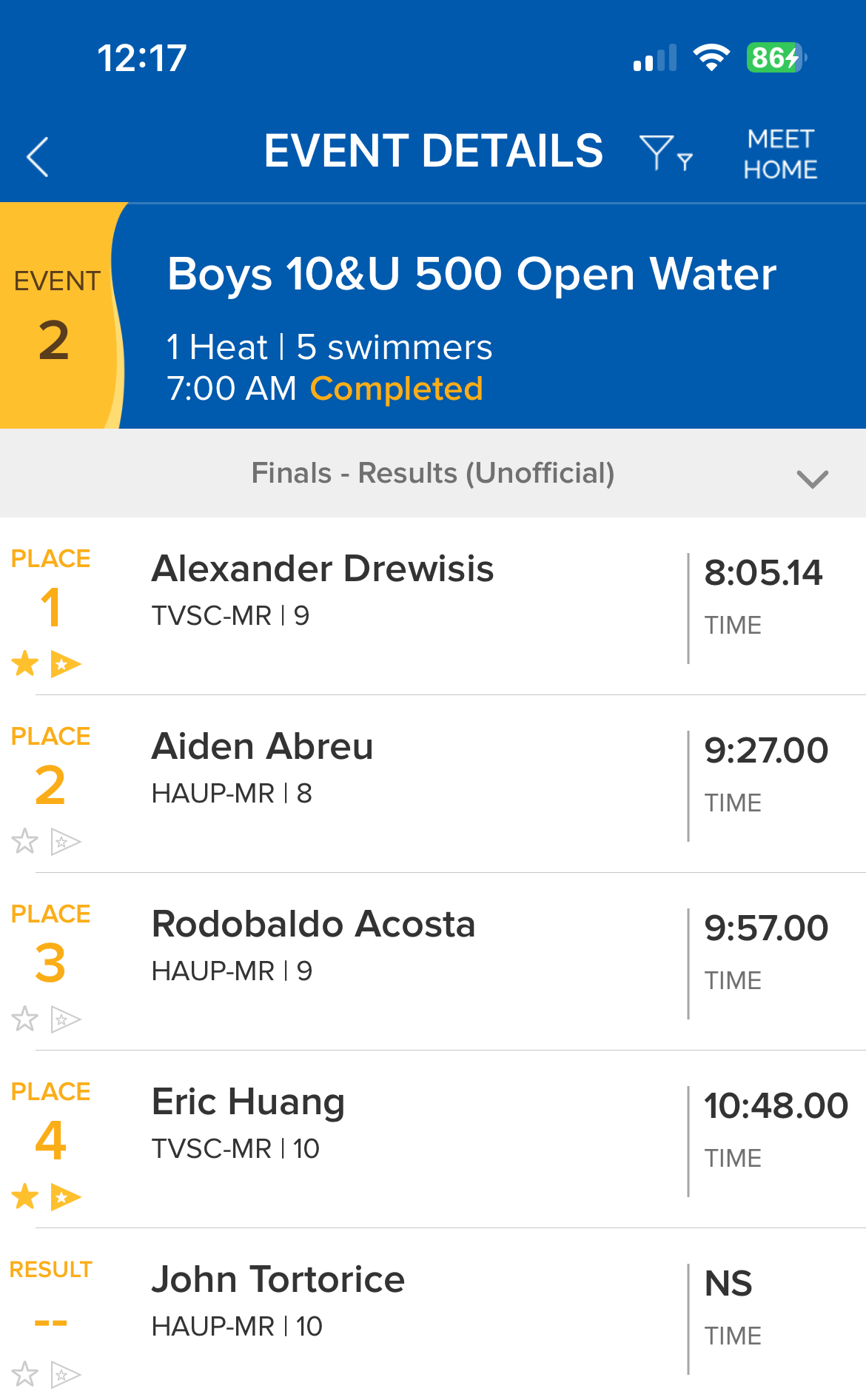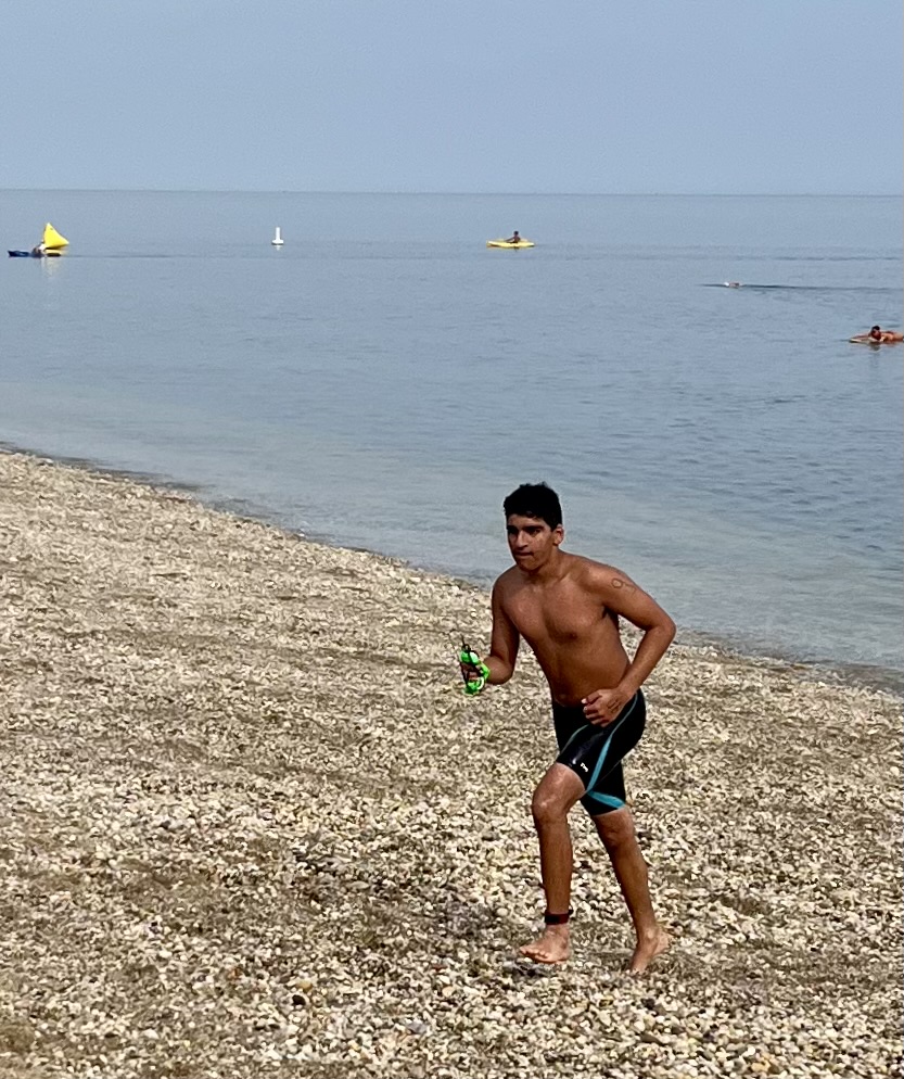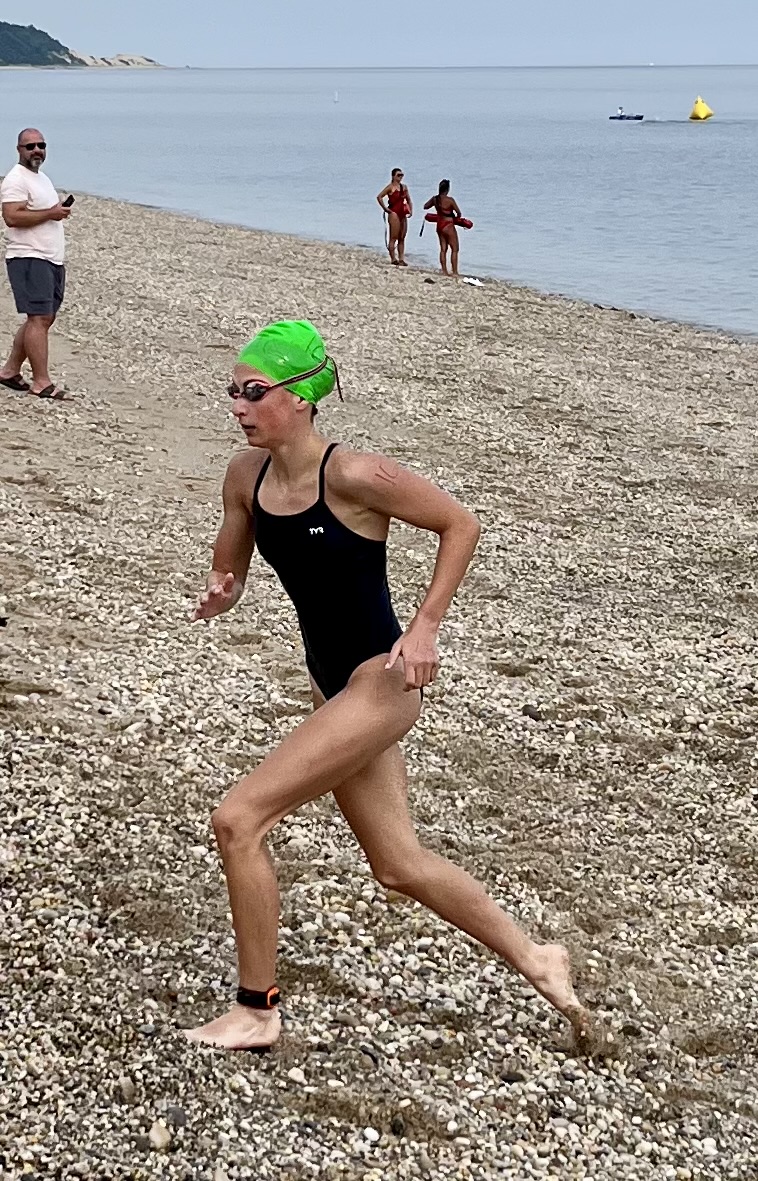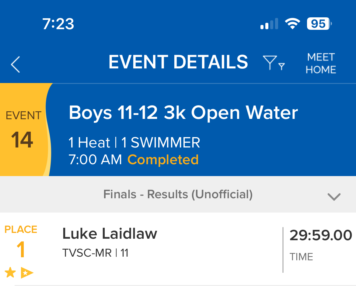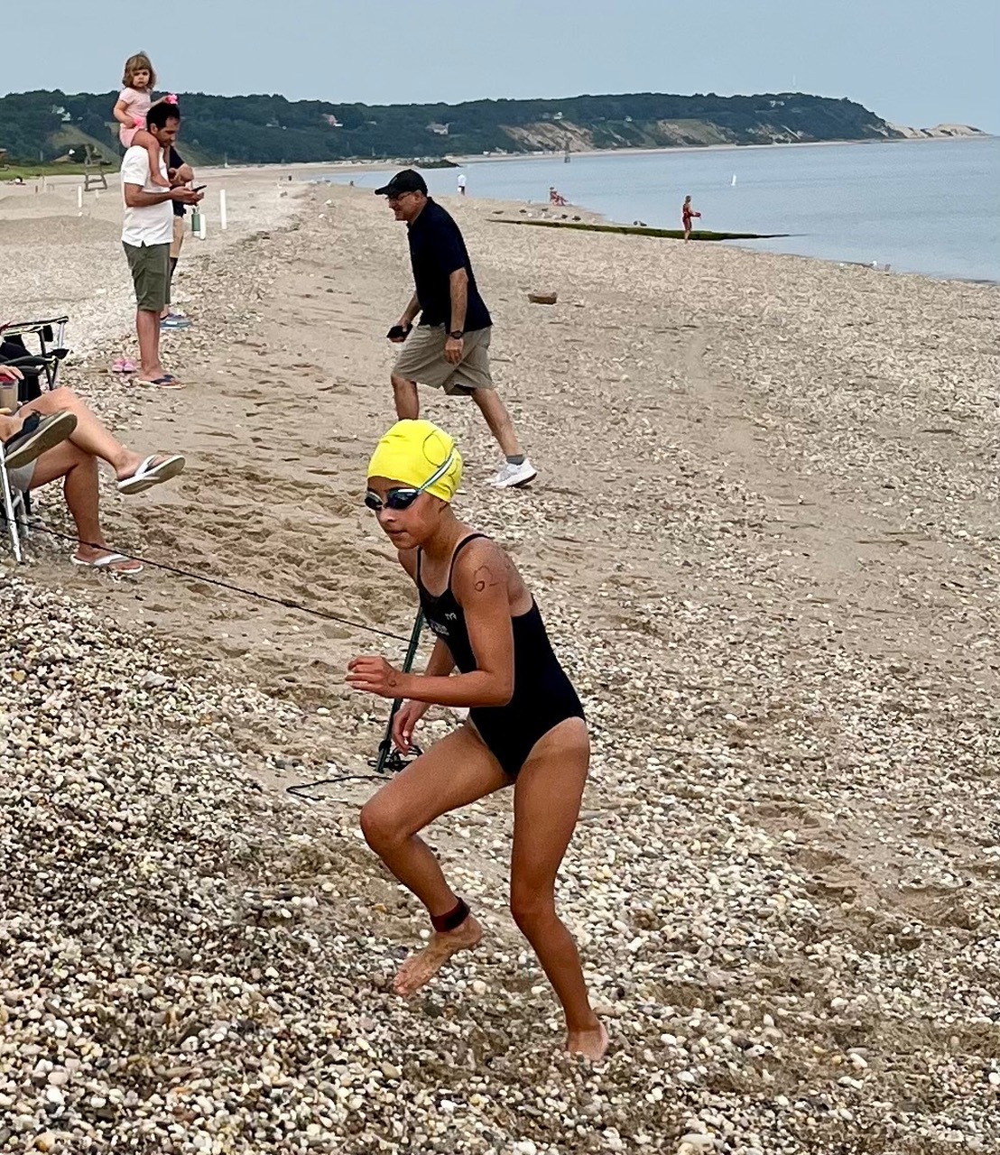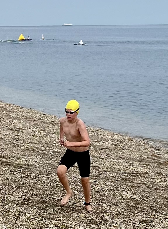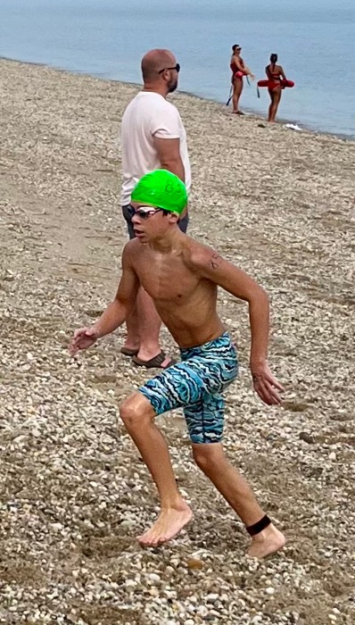 Luke (11) finishing his first 3K came in 4th of all 3K swimmers! and 1st place for 11-12 boys