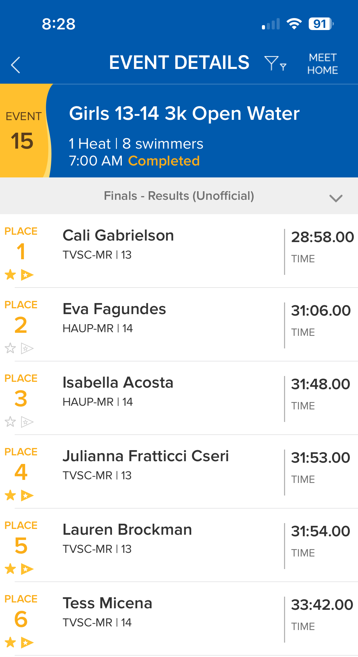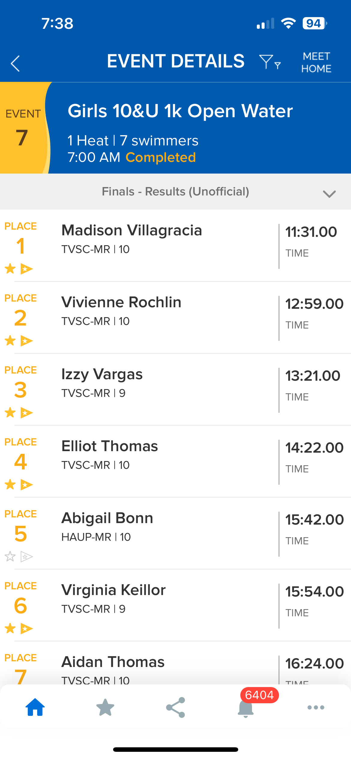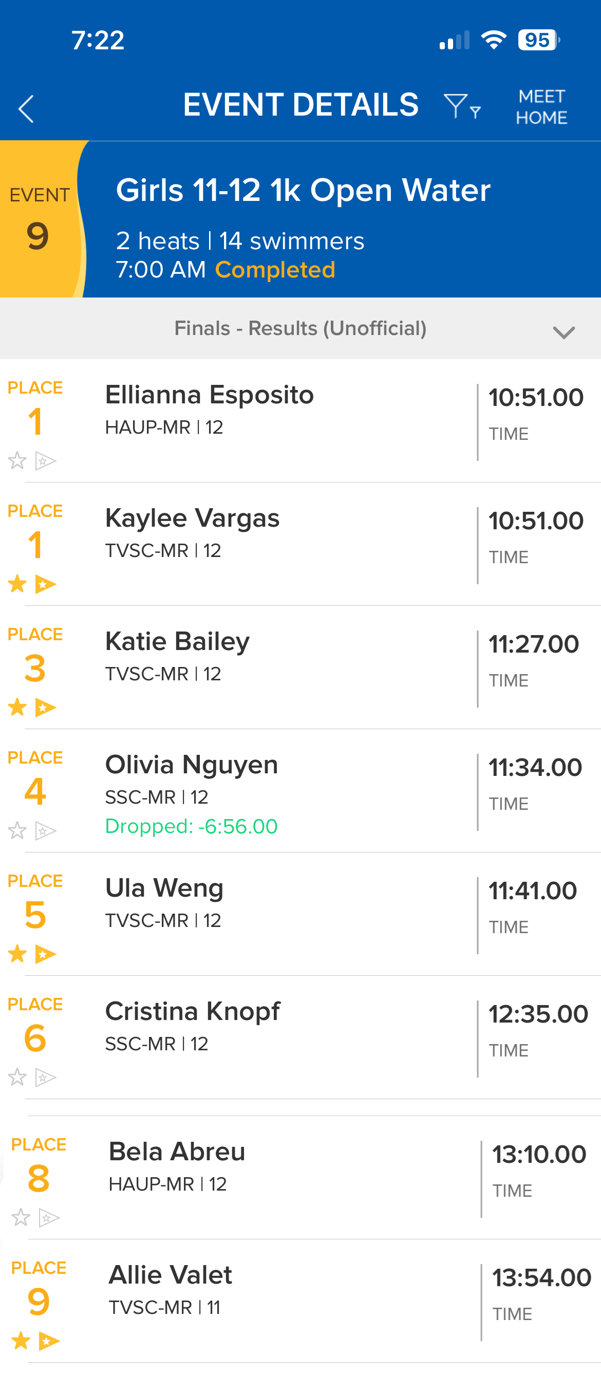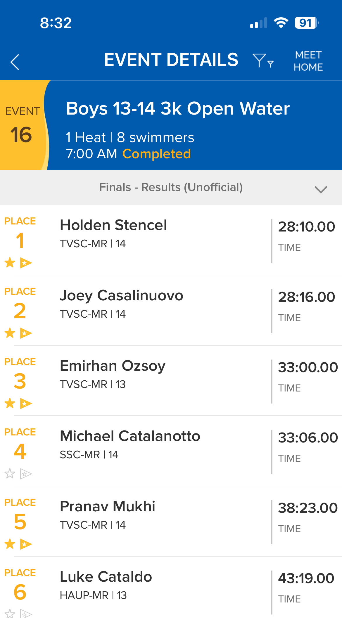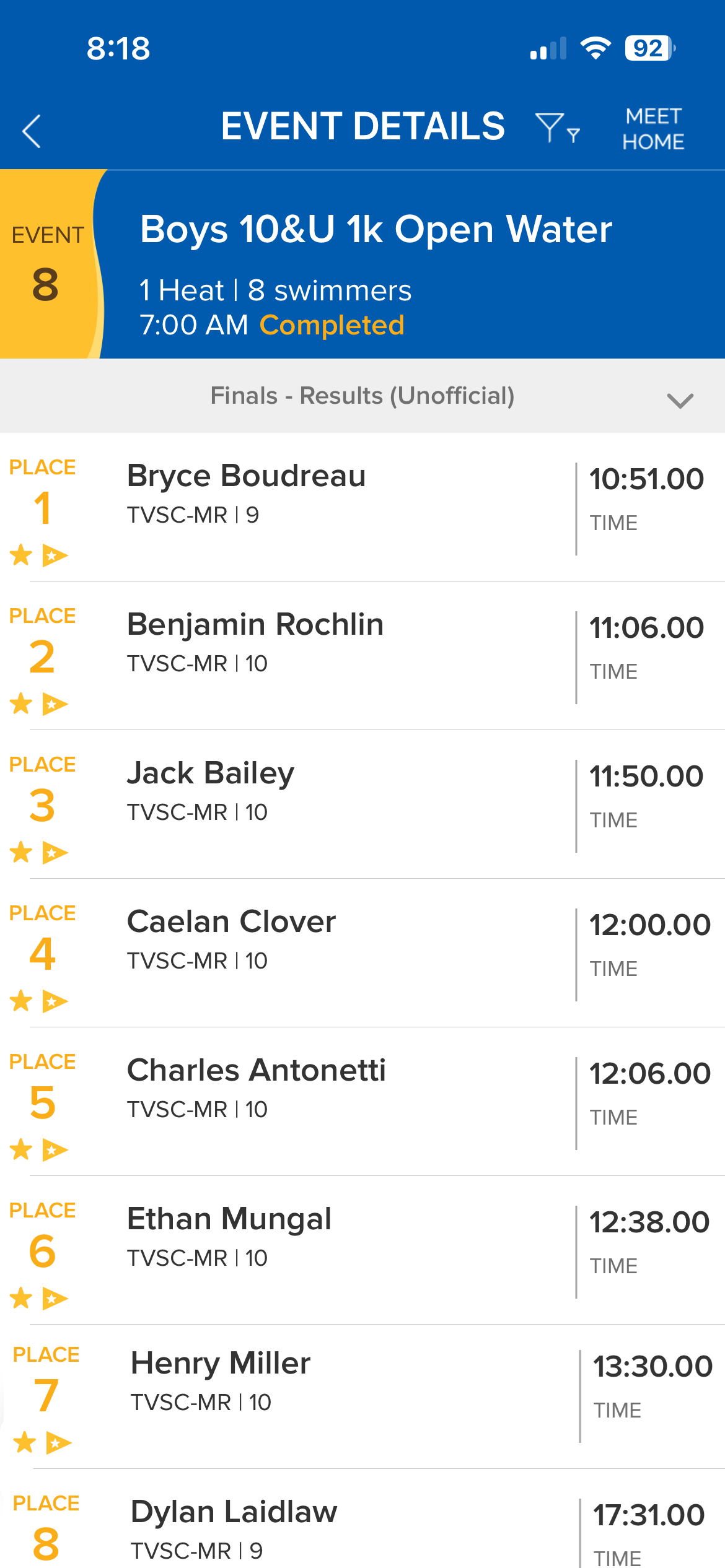 Luke (11) finishing his first 3K came in 4th of all 3K swimmers! and 1st place for 11-12 boys
