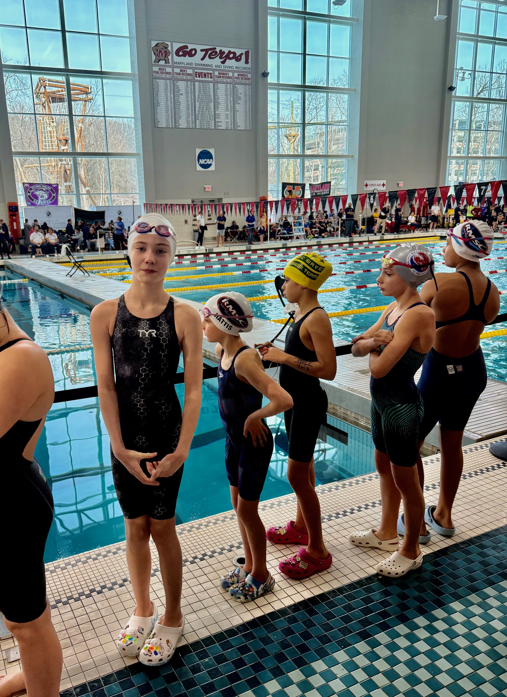 35 swimmers, their familes and Coaches Rita, Dan, Jay and Peter traveled to College Park in Maryland for the annual Eastern IMX Games.at the University of Maryland Eppley Recreation Center. Our athletes (in training) raced 190 times and swam 126 best times -- 66%.