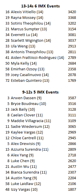 Austin Wu (4), Myla Kelly (3), Marcus Sumpter (2), Antonis Theophilou (2), Everett Lu (2), Katie Bailey (2), Aiden Fratticci-Rodriguez, Reygan Brugnoni, Alex Yang, Ethan Mungal and Izzy Vargas.