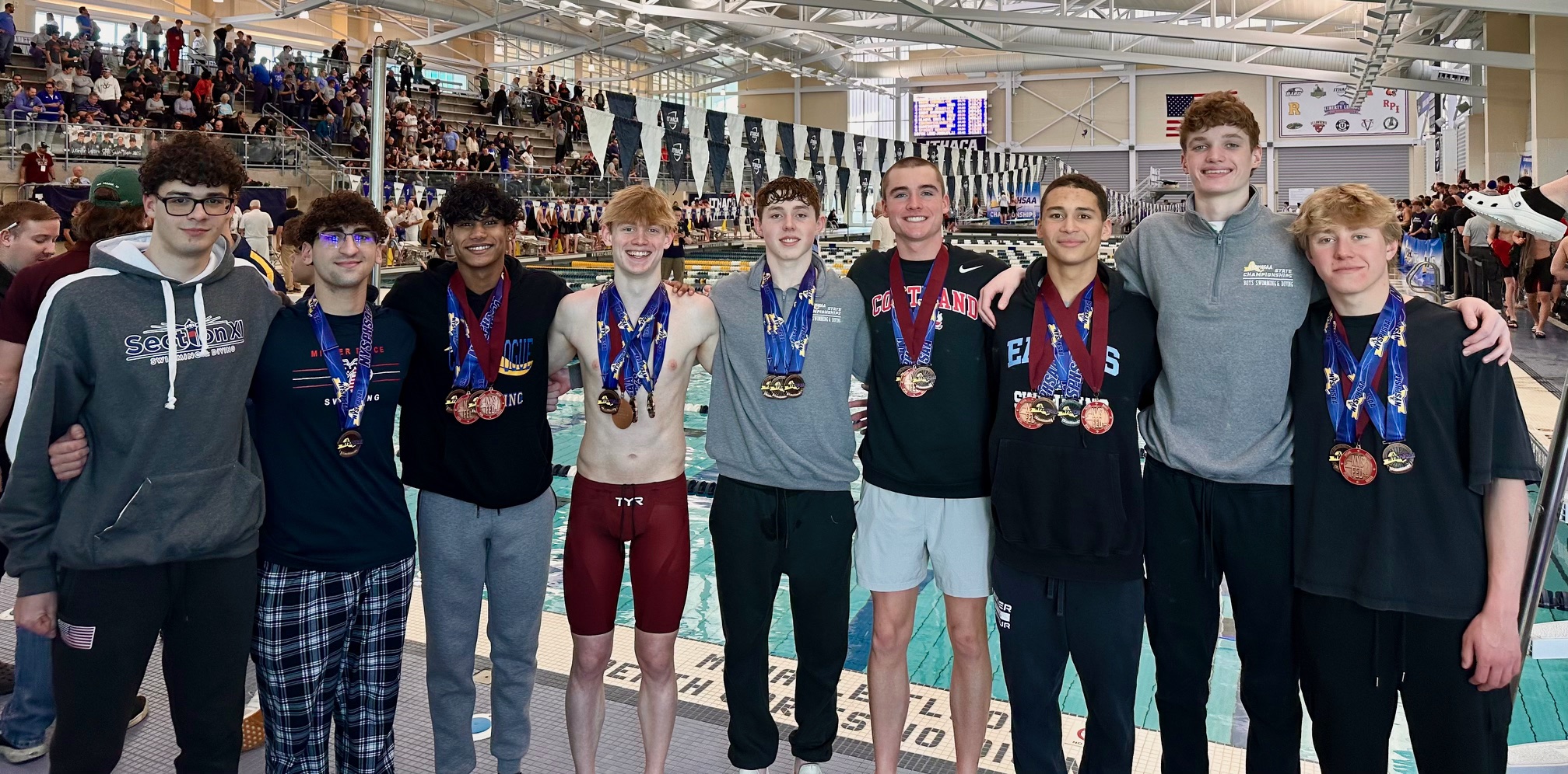 Ihaca College aquatic center - Saturday March 8 - Segei (Ward Melvile HS), Johnny (Miller Place HS), Ethan (Consewogue HS), Jacob (Smithtown Christian School), Colin (West Islip HS), Colin (Port Jeff HS), Trevor (Rocky Point HS), Ryan (Port Jeff HS) and Brayden (Sachem HS)