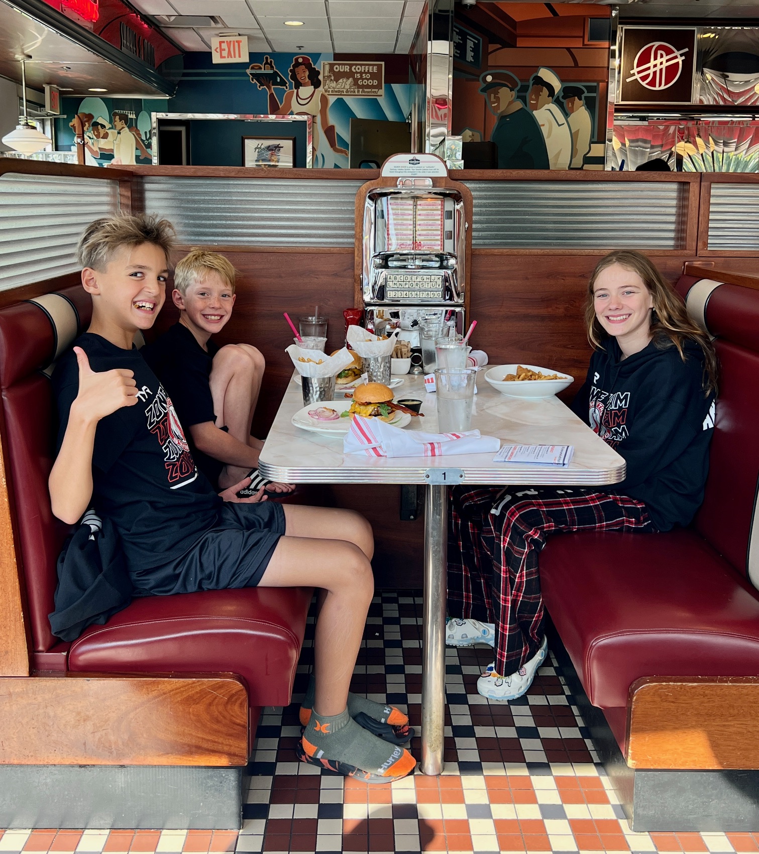 Dinner time for 10-&-Under swimmers Bryce, Dylan and Arwen