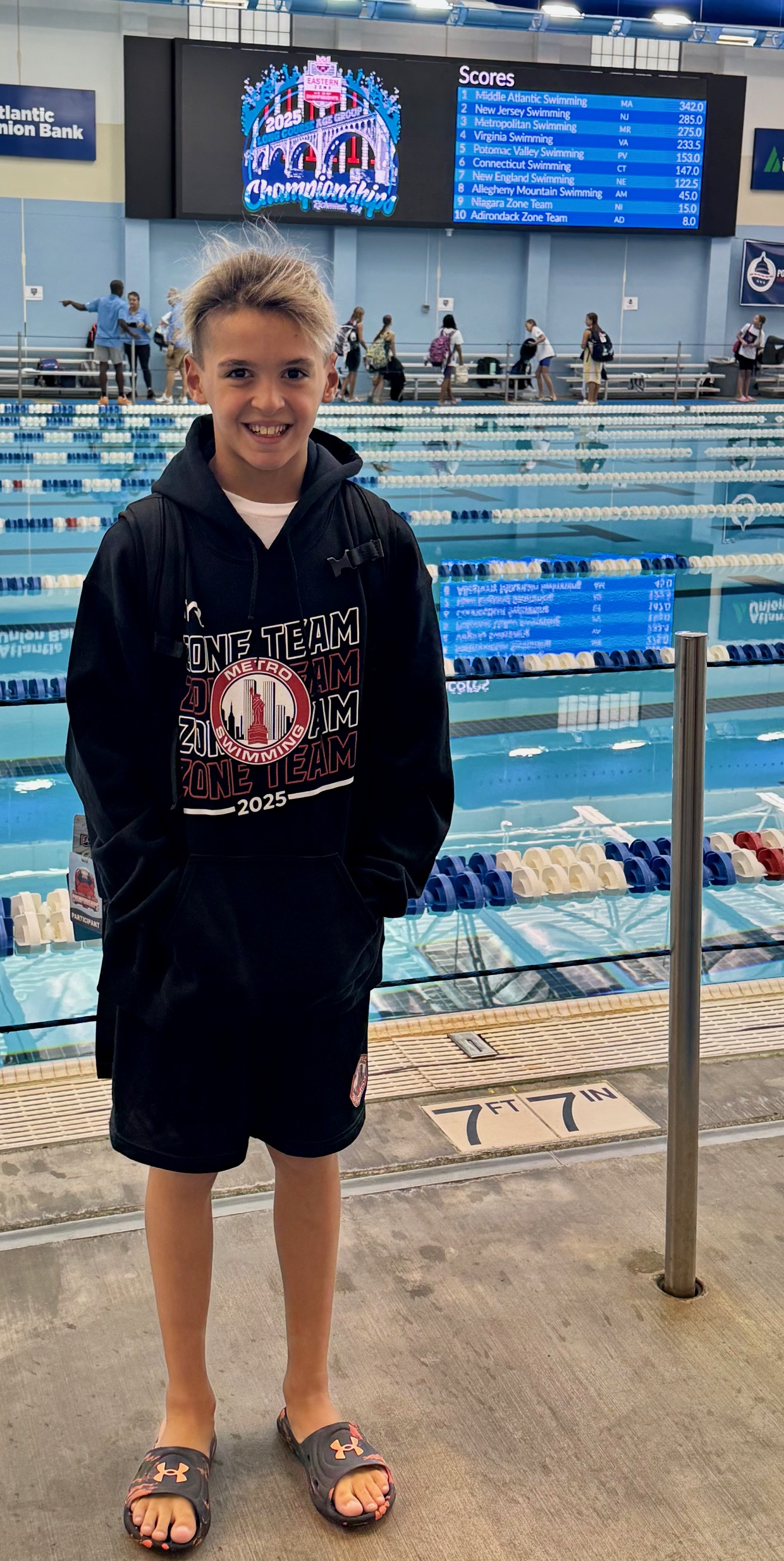 Bryce also swam the breaststroke leg of the winning Metropolitan Swimming 10 & Under 400 Medley Relay, which broke the Eastern Zone 10 & Under boys meet record.