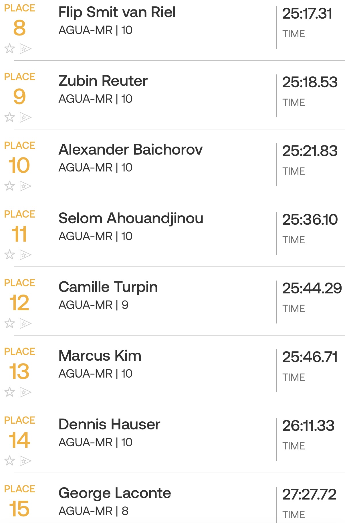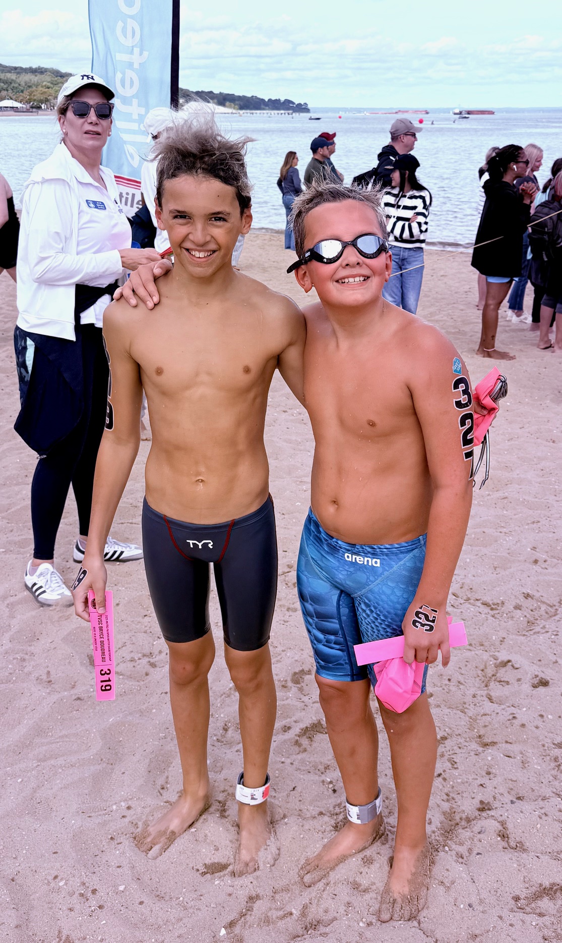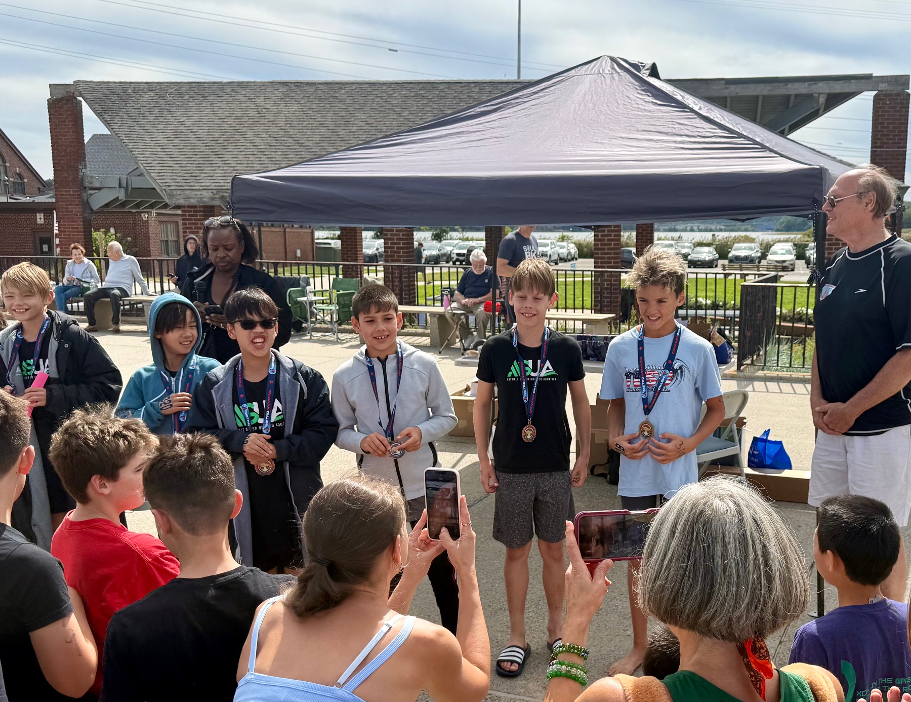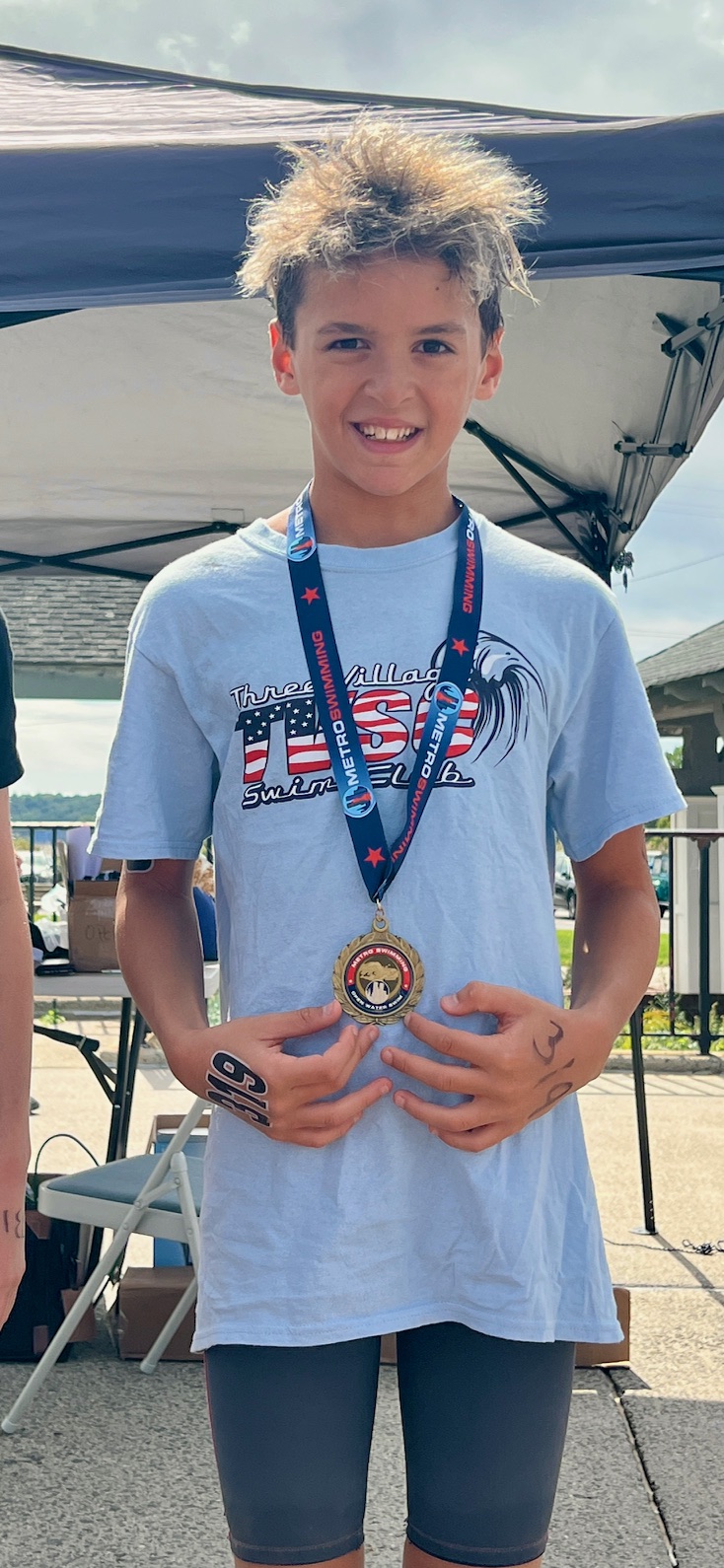 On a nice Sunday morning at the North Hempstead Beach Park in Nassau County, Bryce started the 2025-2026 season by winning the 1,25K at the 2025 Metropolitan Swimming Open Water Championships.