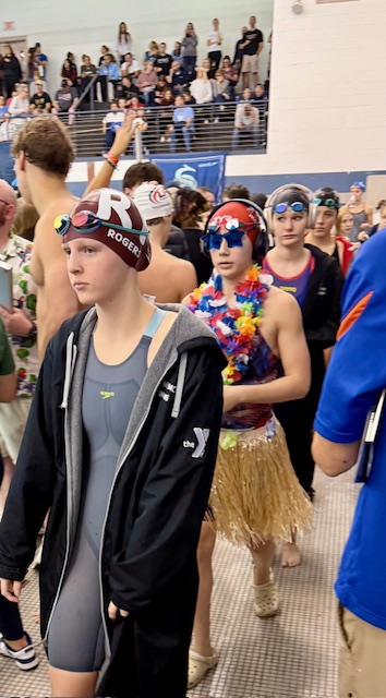 Graduating Senior, Meghan walking up for her 200 IM A-final
