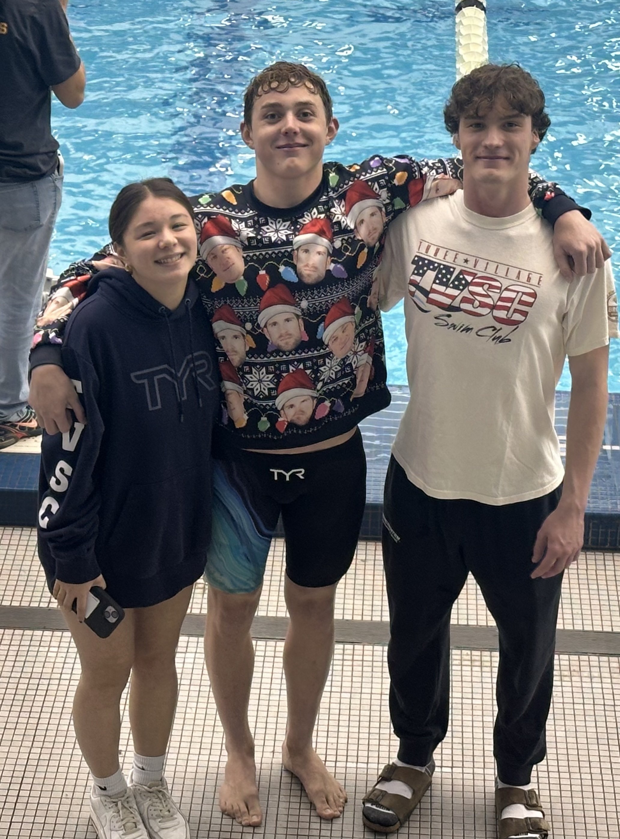 Adding to the tradition, coaches Chris, Danny, Mike, Kate, Cassandra, Rita, and AvaGrace all competed at the Holiday Cup as age‑group swimmers. Alumni Julia Smit and Tom Luchsinger continue to hold several Holiday Cup meet records, underscoring TVSC’s legacy at this event and pool records by Julia and Tom were only recently broken.
