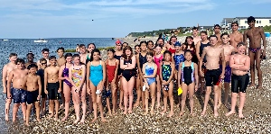 32 TVSC swimmers showed up for the first open water practice of the summer ar Cedar Beach. The water temperature was a cool, ~70 degrees, but with the bright sun it was bearable. The water temperature will increase every day. The Junior 1 swimmers swam one lap around the Cedar Beach East swimming area and most Junior 2s swam two laps with Coach Kate. Town of Brookhaven lifeguard and TVSC coach, Rita Chen, helped guide the swimmers on a surf board and another lifeguard assisted the swimmers in a kayak....